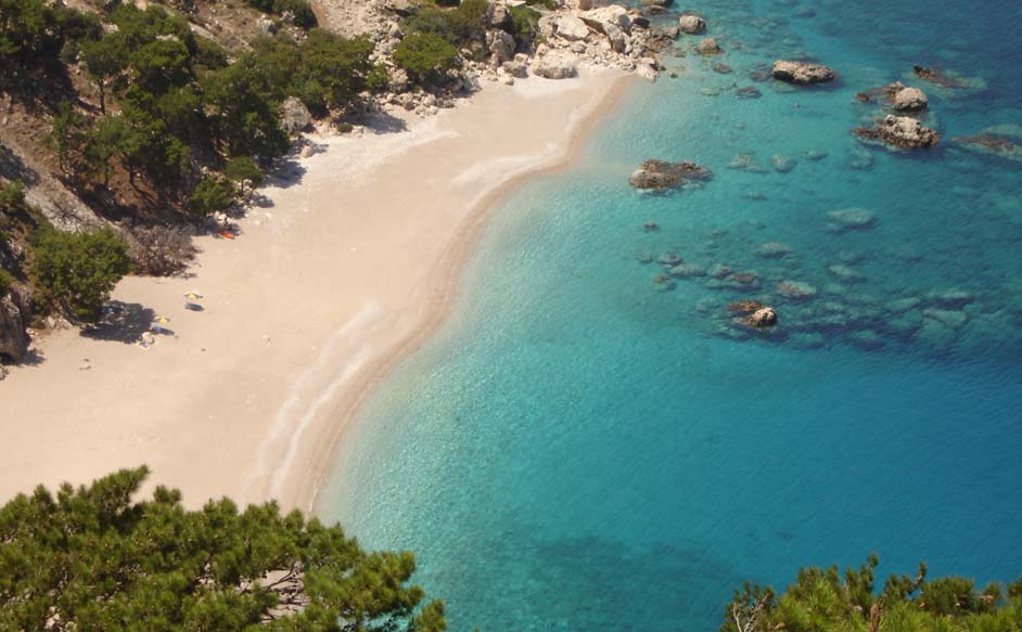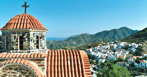 From its remote position Karpathos has preserved many peculiarities of dress, customs and dialect, the last resembling those of Crete and Cyprus. Τhe island is located about 47 kilometers southwest of Rhodes, in the part of the Mediterranean which is called, after it, the Carpathian Sea (Latin: Carpathium Mare). The Sea of Crete, a sub-basin of the Mediterranean Sea, has its eastern limit defined by the island of Karpathos. All villages preserve intensively the traditional style of the island. In the southeast of the island you can find Pigadia (official name Karpathos), capital and main port of the island.